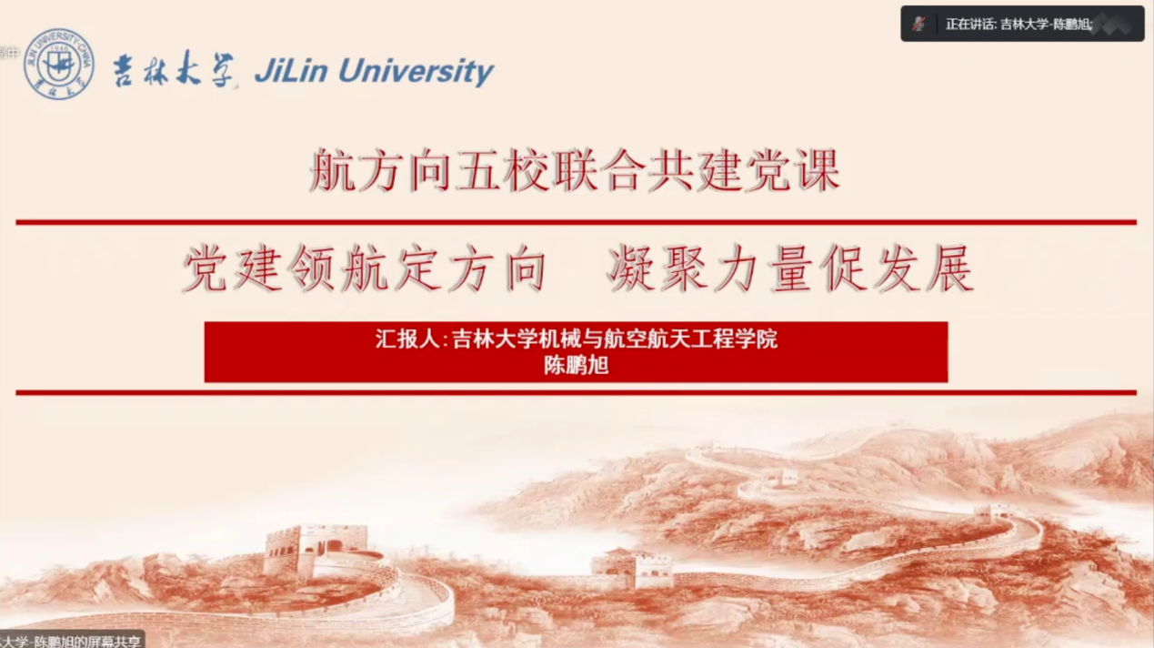 为深入学习党的二十大报告,认真领悟党的二十大精神,全面贯彻落实习近平总书记关于青年工作的重要思想,2022年12月3日下午,清华大学、北京航空航天大学、冰球突破入口官网、厦门大学以及哈尔滨工业大学航空航天专业研究生党支部以“学习二十大·启航新征程”为主题联合举办党日活动。本次活动以线上的形式召开,由清华大学航天航空学院研究生党支部成员陈亮主持会议,与会人员包括各高校学院党支部书记和研究生党员,其中机械与航空航天工程学院2022级硕士学生党支部全体成员参与了本次活动。