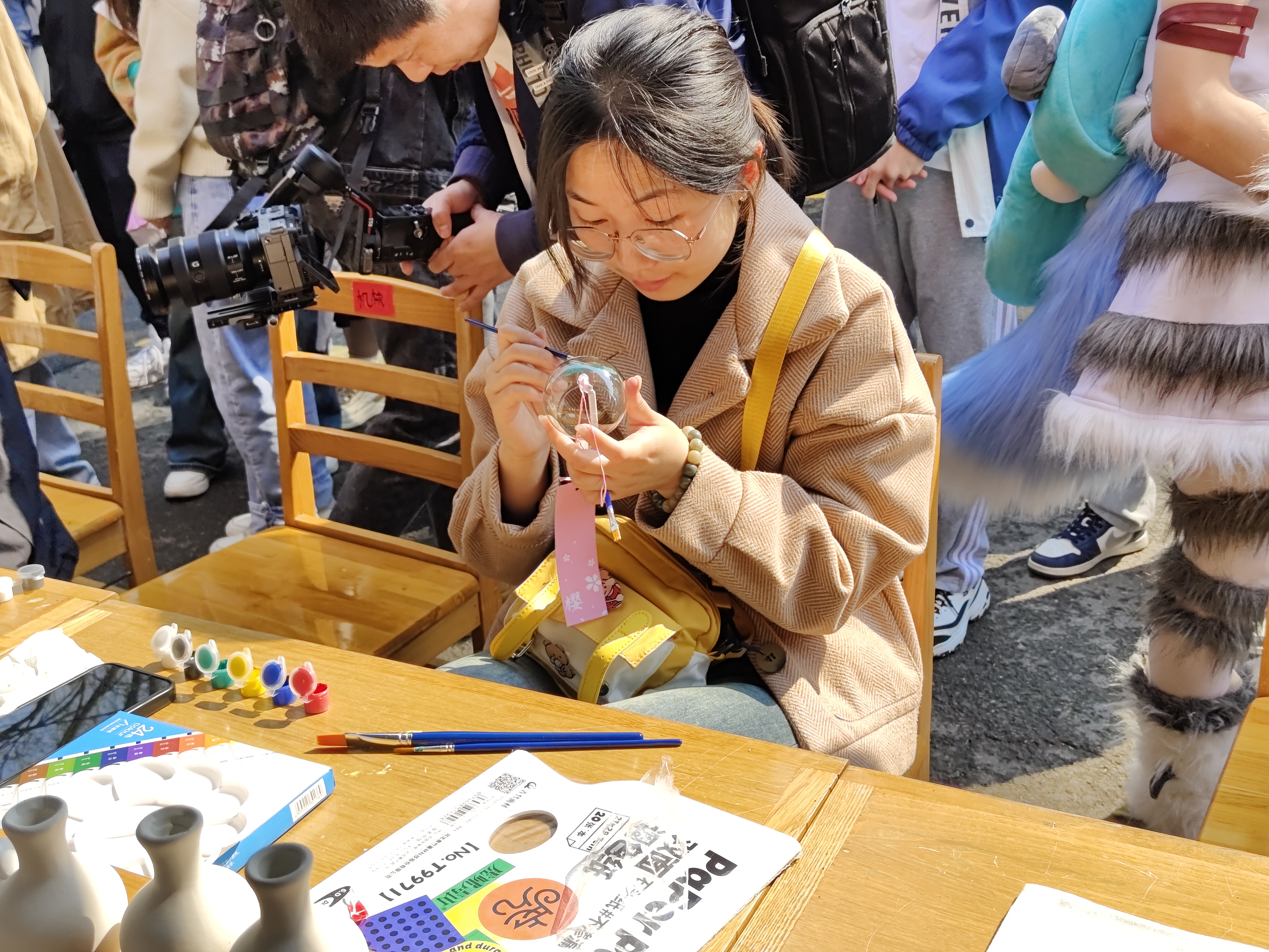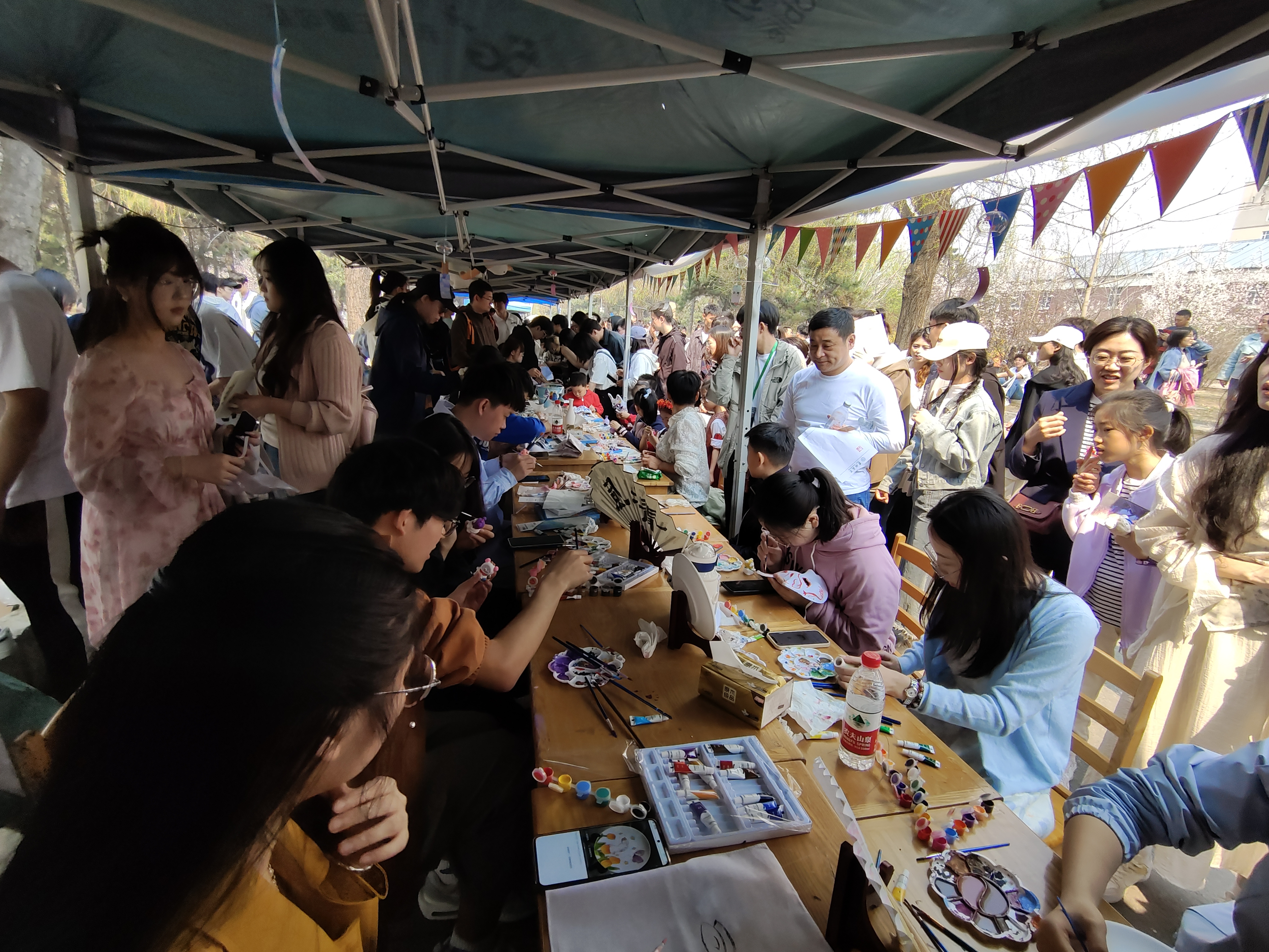 “杏纤纸扇·绘陶炫彩”陶扇面彩绘活动中,同学们手持画笔,在折扇和陶器素坯上勾勒描绘,留下青春的色彩。一件件别出心裁的作品中尽显青年学子的蓬勃朝气,一笔一划中满满都是托物兴怀的笔墨雅韵。