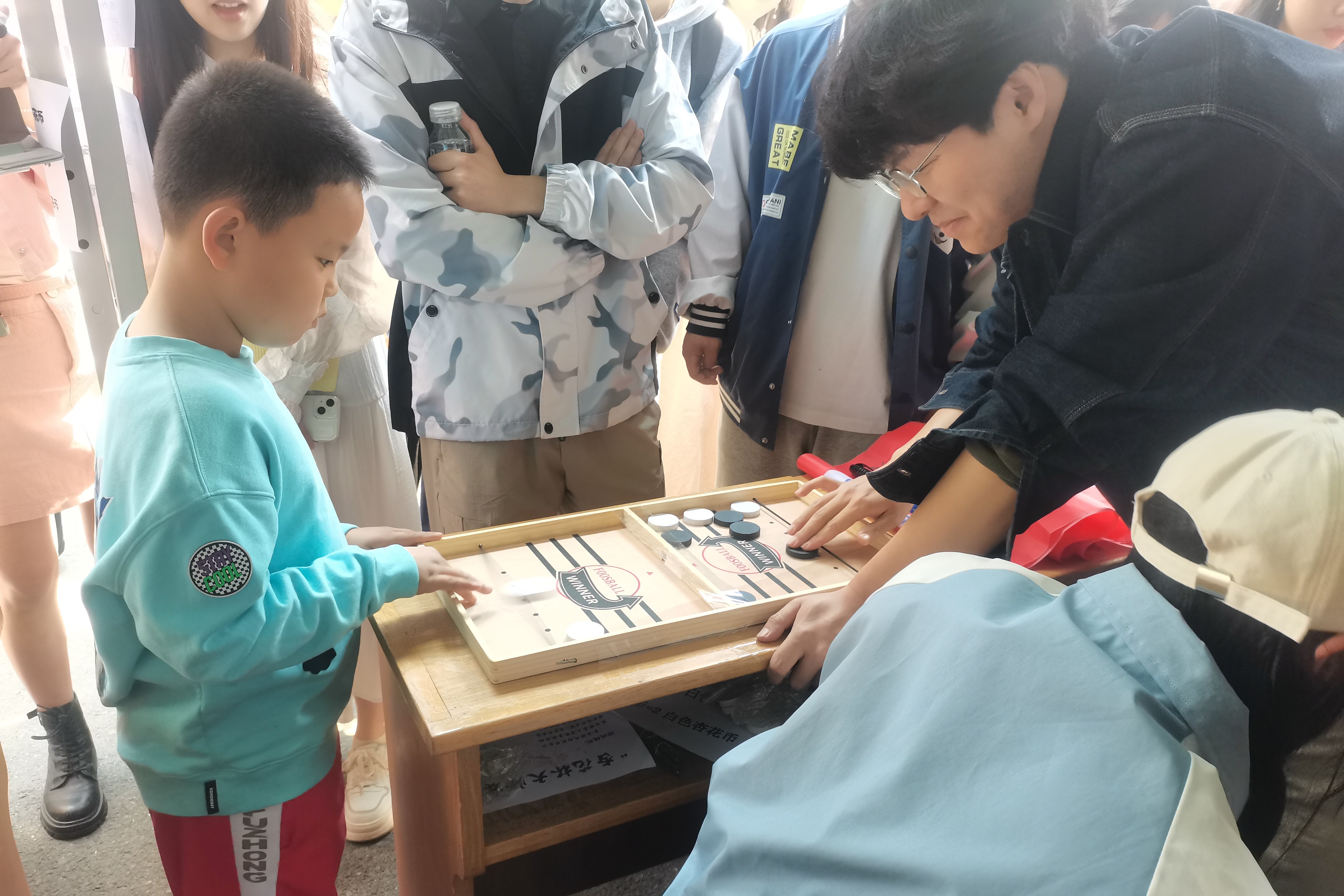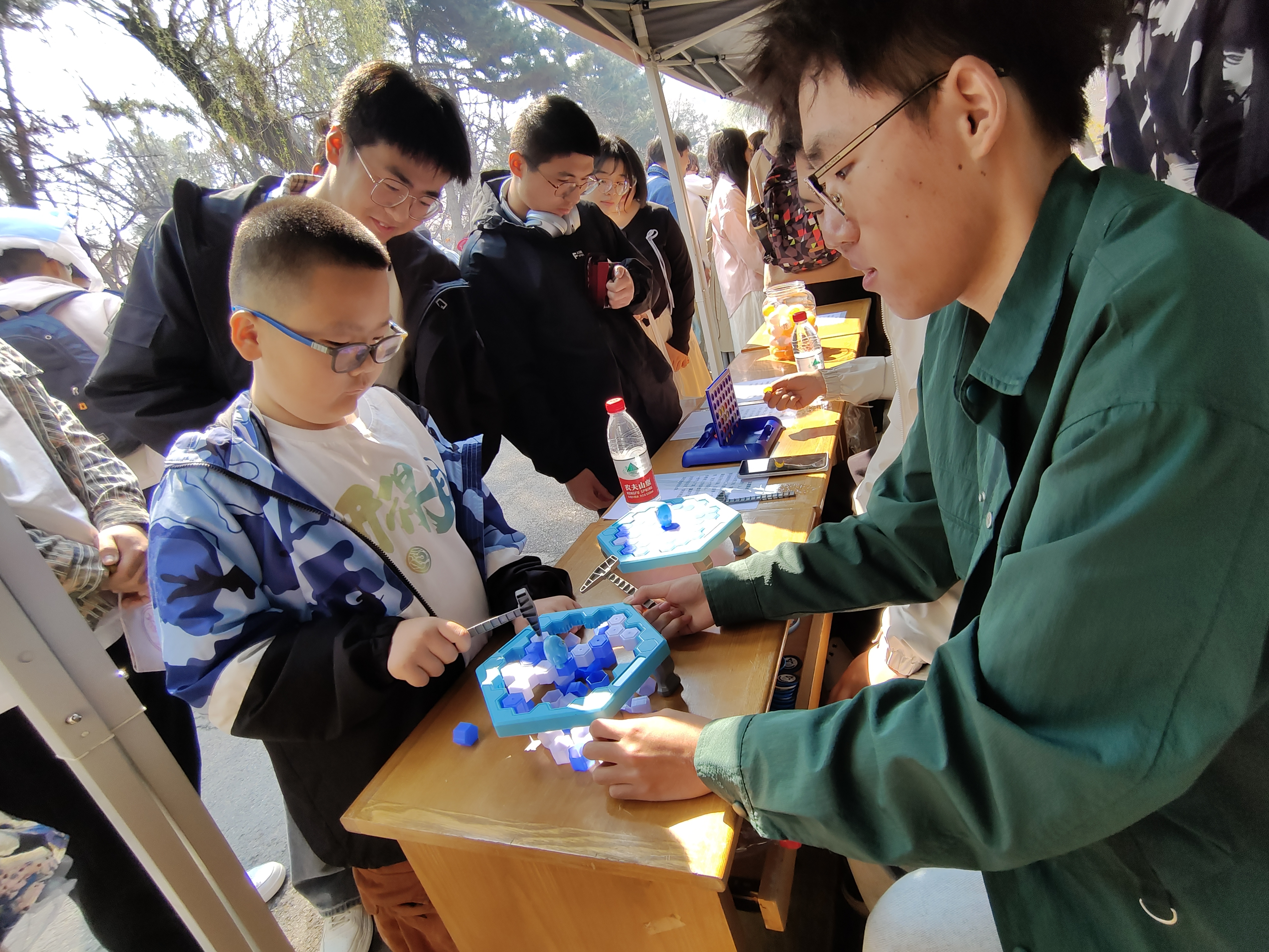 “杏花杯大师赛”趣味竞技性桌游活动中,开放了敲冰块、弹弹棋、桌面台球等小游戏,参与者们互相挑战,赢取杏花币,紧张刺激的游戏设置为活动现场增色不少。