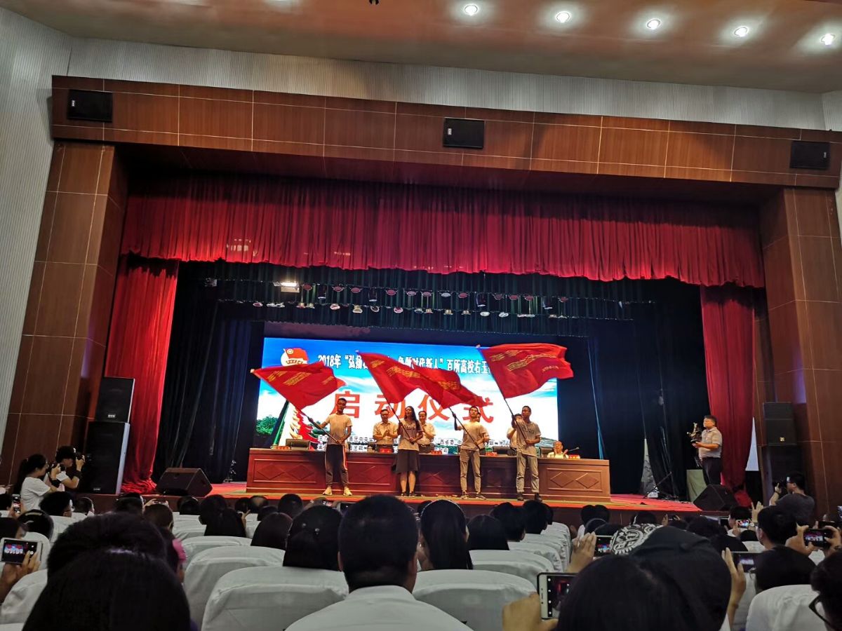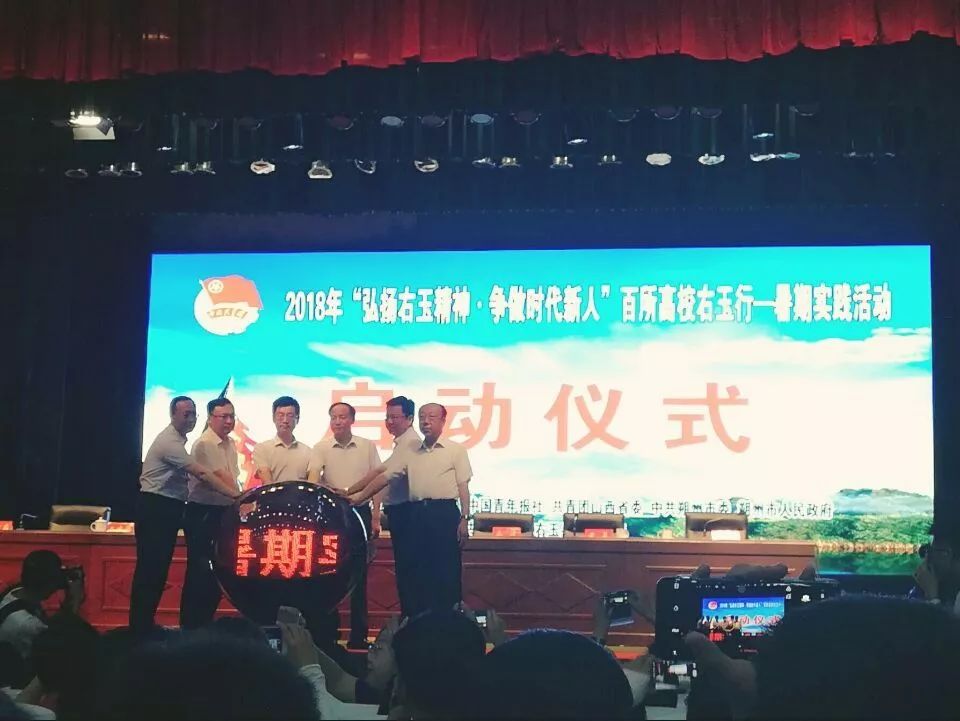 7月23日早八点,启动仪式在右玉县职工活动中心举办,右玉精神研学团所有成员参加启动仪式。启动仪式上,冰球突破入口官网学子同中国地质大学、中国石油大学、南昌大学作为四大高校代表接受四大重点课题分队旗。各领导共同按下启动球,标志此次社会实践正式启动。此时全场掌声热烈,各个高校旗手挥舞各自团队队旗,场面振奋人心。